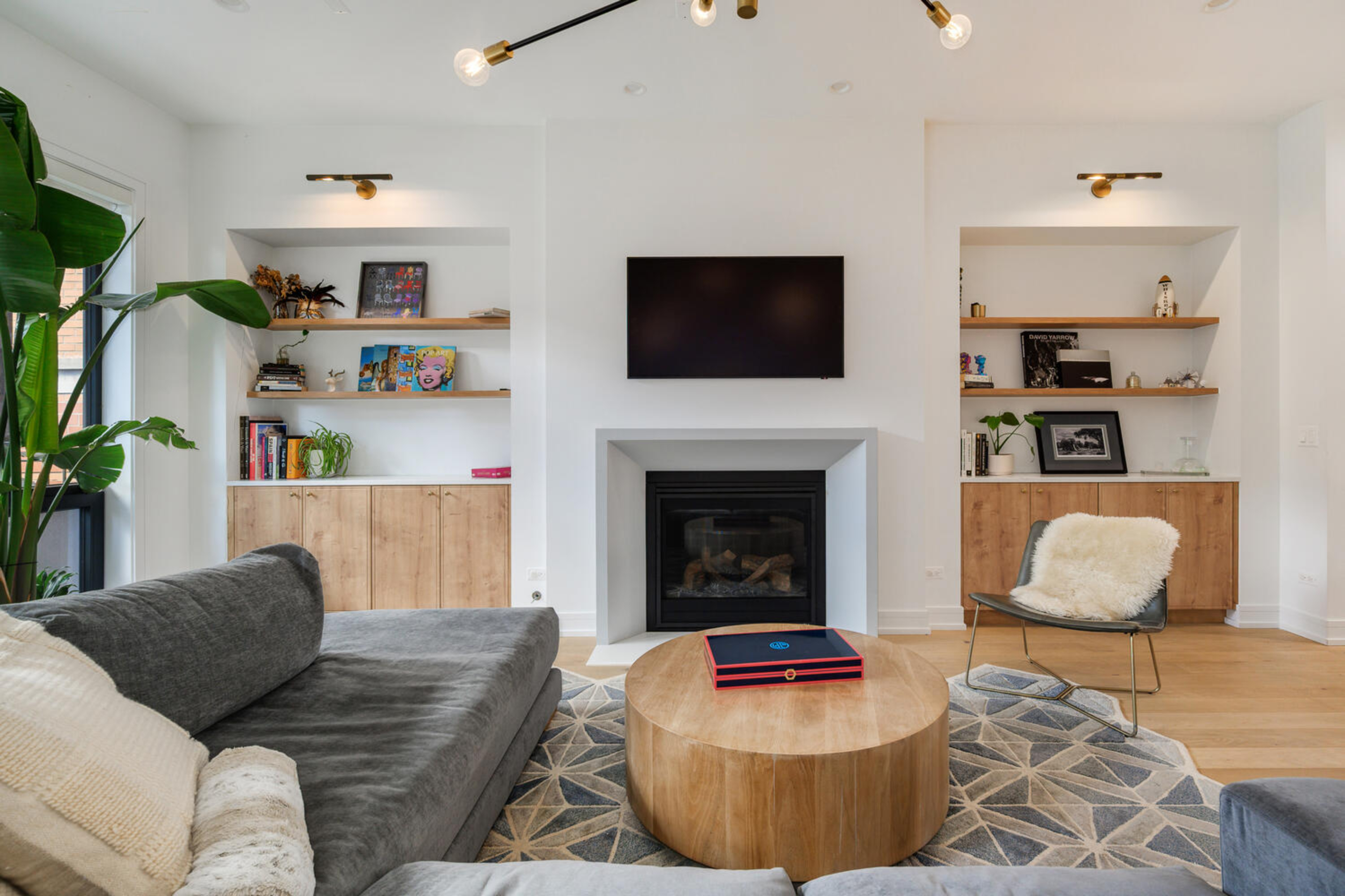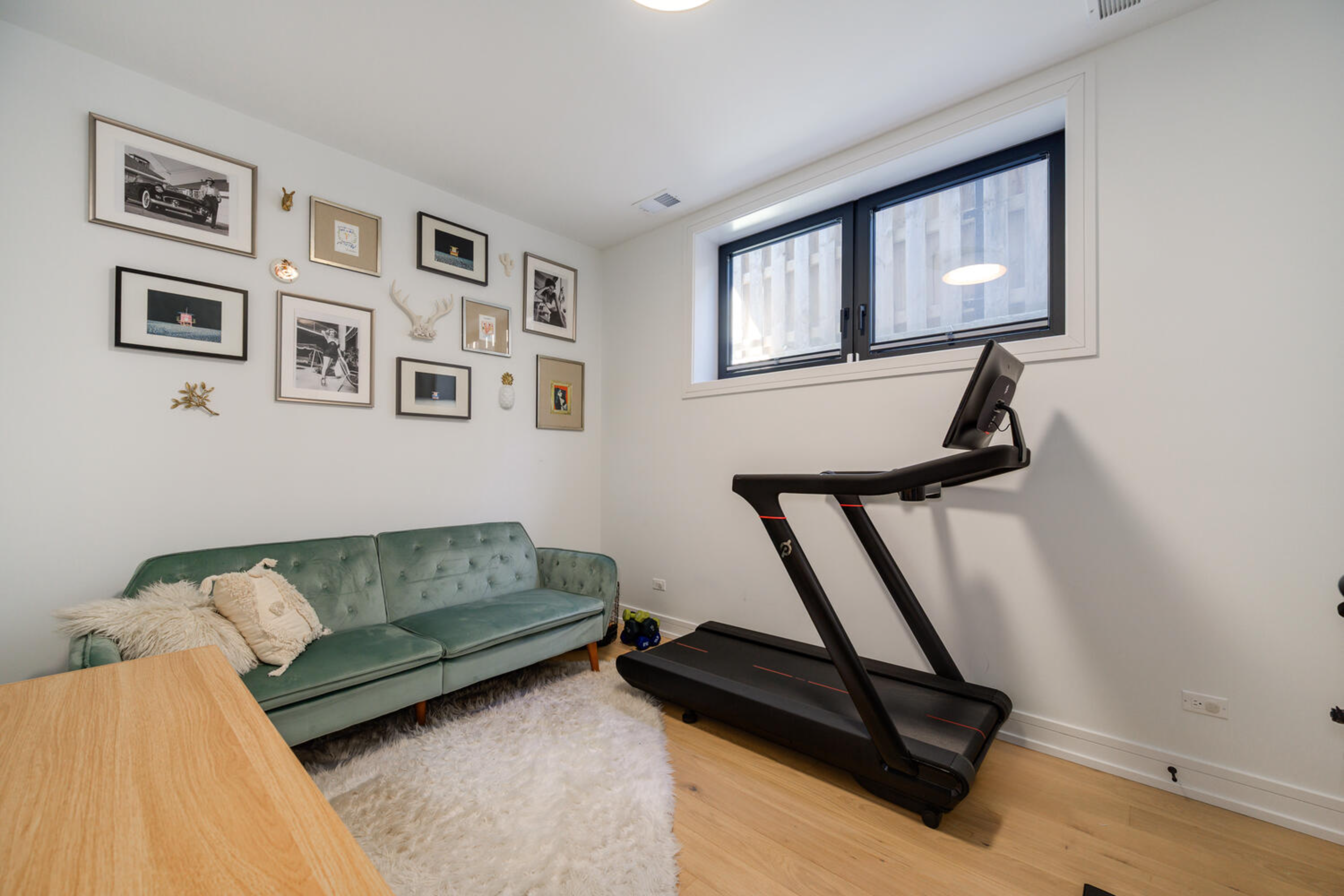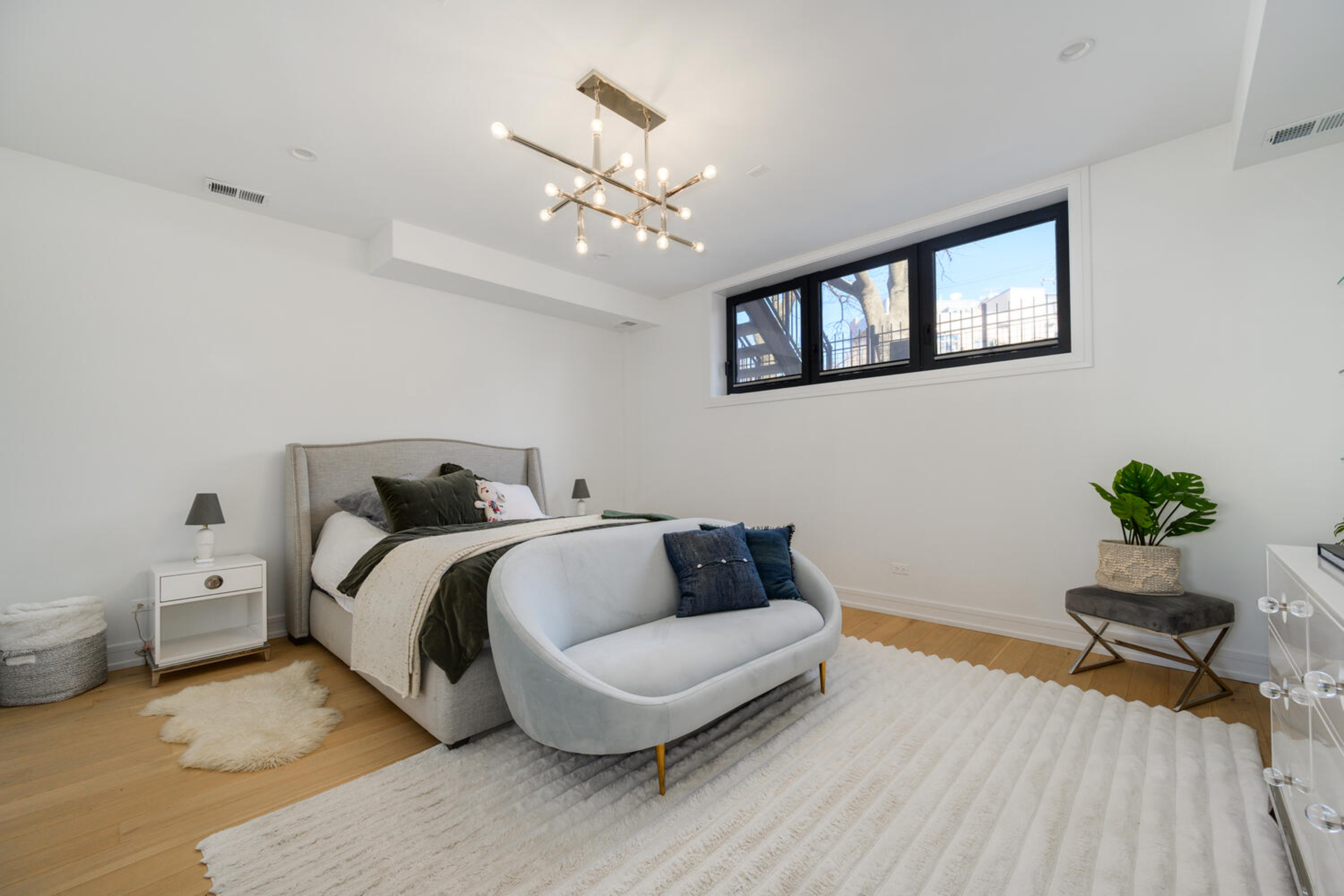 Spacious and Stylish 3 bedroom/2.1 bath duplex-down in an A+ Wicker Park location! Built in 2023 (Volo Development), this stunning home showcases an open living concept ideal for both entertaining and modern city life. Featuring an expansive kitchen with custom designed white shaker cabinets, Sub-Zero and Wolf appliances, quartz countertops and full height backsplash. The kitchen is flanked by a formal living room at the front of the unit that leads to a covered front balcony AND a cozy family room with a gas fireplace, built-in cabinetry and access to the rear deck and private garage roof deck. The garage deck is fully finished with a pergola, heaters, lighting and planters. The lower level has three spacious bedrooms. The primary suite has two separate closets and a luxurious en-suite bath with 6' soaker tub and glass enclosed steam shower and a carefully curated tile selection. Bedroom two and three both fit queen-size beds and have ample, organized closets. The lower level also has an additional full bath and laundry center. Other interior finishes include Boen wide plank hardwood floors throughout, contemporary trim package, solid core interior doors, radiant heated floors on the lower level, Ring alarm system with four camera and door/window sensors, UV air purifier, upgraded dehumidifier, custom window treatments and light fixtures. Walk to everything in Wicker Park & Bucktown including the CTA Blue line, restaurants, bars and shopping. Top rated Burr elementary school district. EXTRA-WIDE garage parking and a massive private storage unit with shelving included.