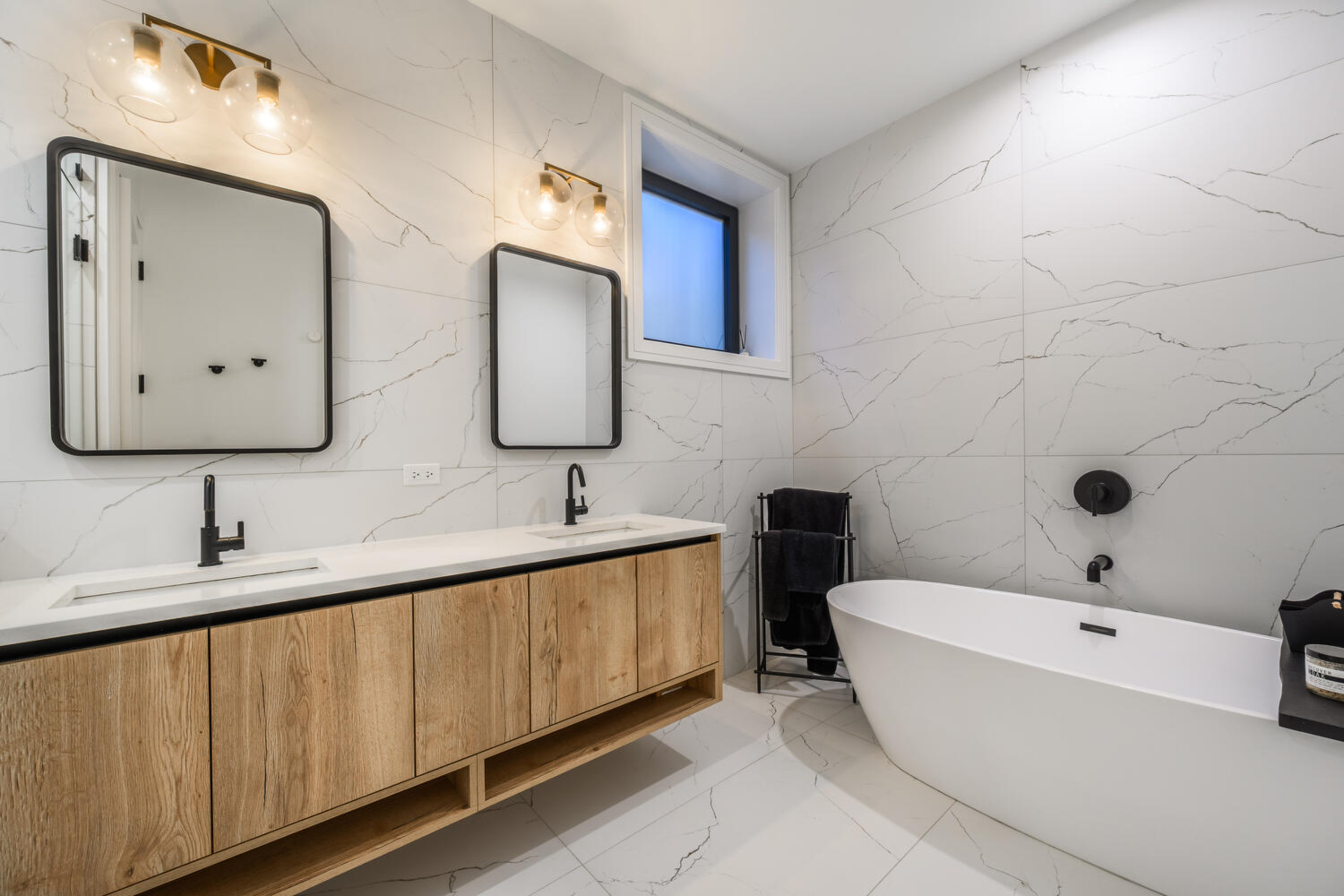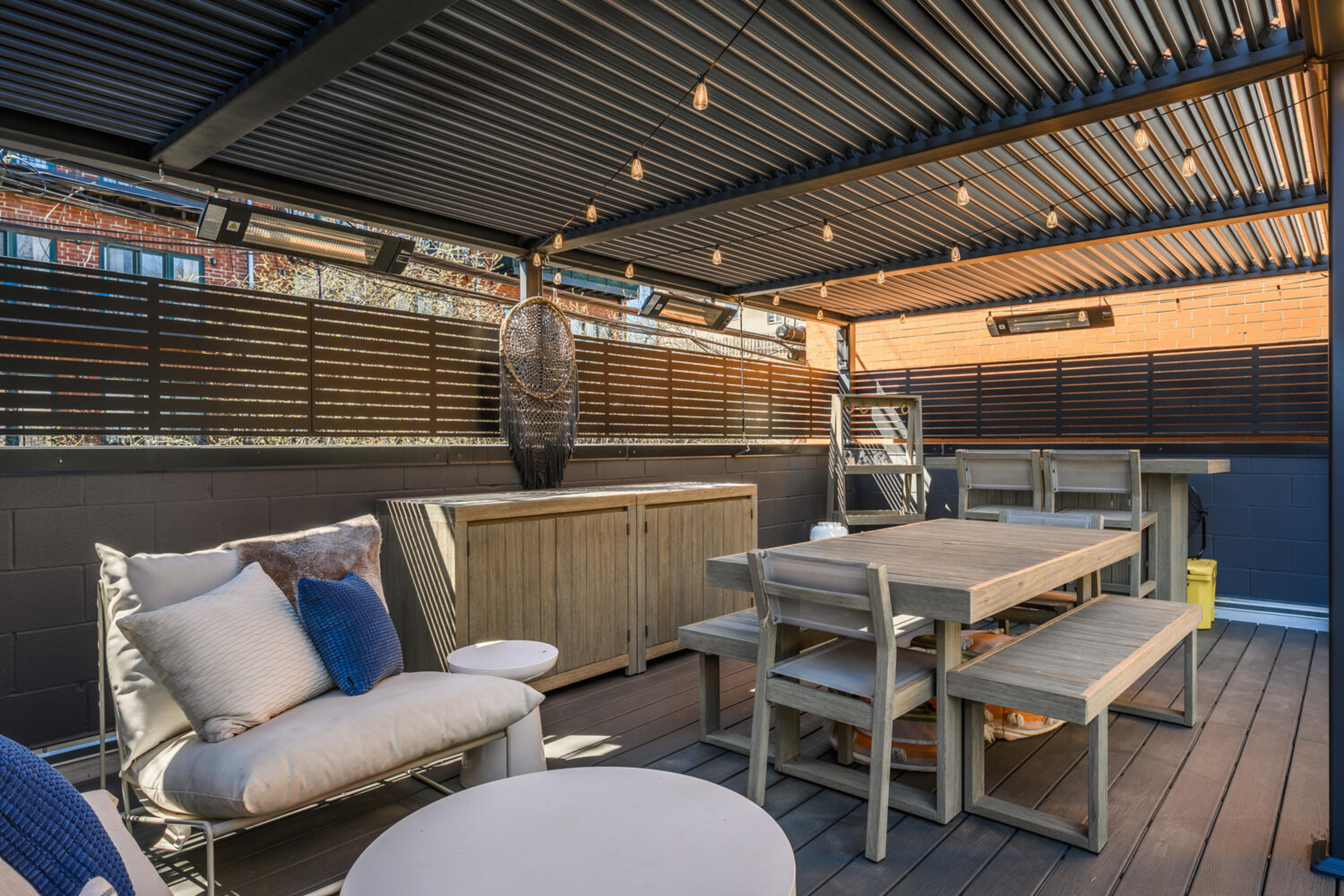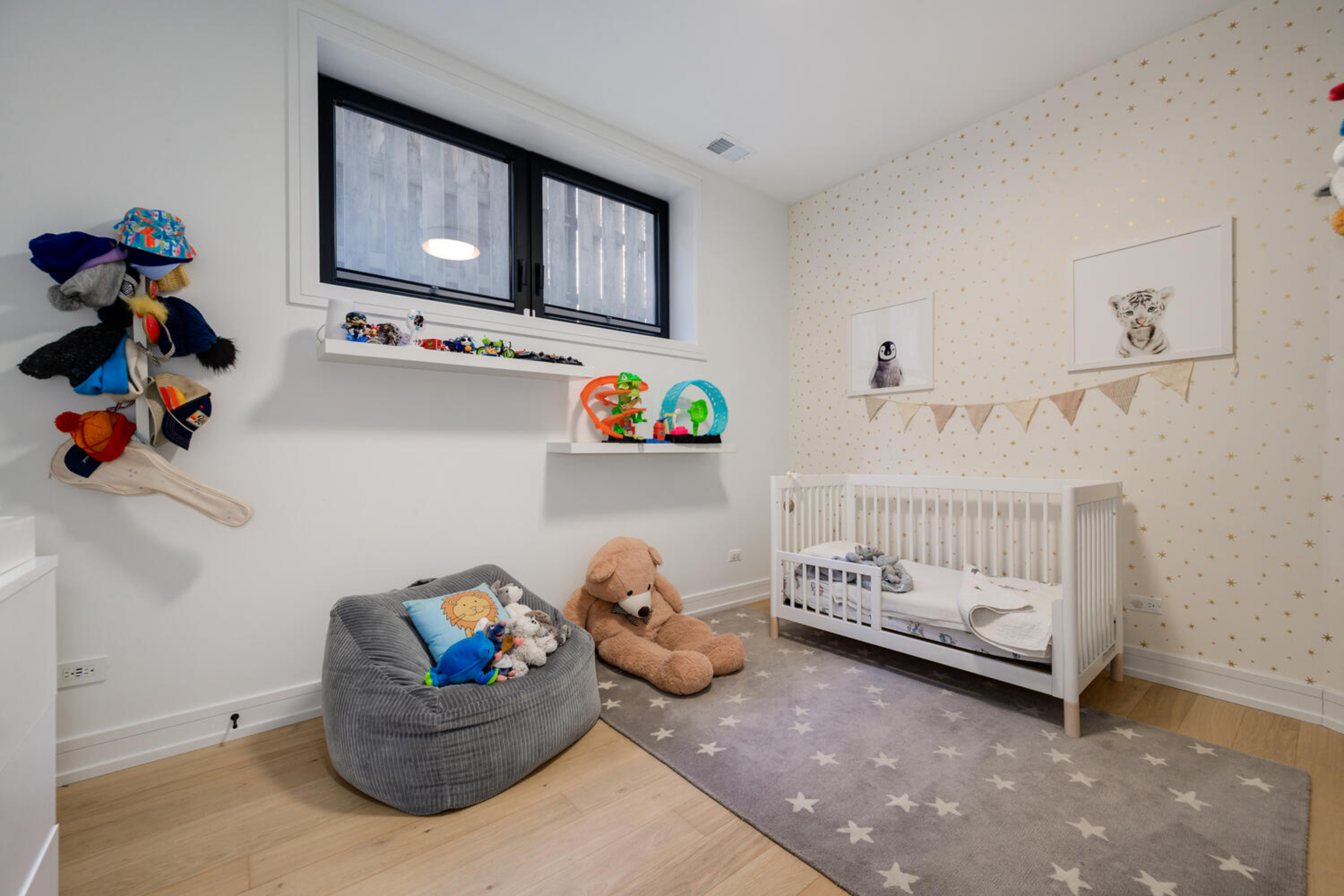 Spacious and Stylish 3 bedroom/2.1 bath duplex-down in an A+ Wicker Park location! Built in 2023 (Volo Development), this stunning home showcases an open living concept ideal for both entertaining and modern city life. Featuring an expansive kitchen with custom designed white shaker cabinets, Sub-Zero and Wolf appliances, quartz countertops and full height backsplash. The kitchen is flanked by a formal living room at the front of the unit that leads to a covered front balcony AND a cozy family room with a gas fireplace, built-in cabinetry and access to the rear deck and private garage roof deck. The garage deck is fully finished with a pergola, heaters, lighting and planters. The lower level has three spacious bedrooms. The primary suite has two separate closets and a luxurious en-suite bath with 6' soaker tub and glass enclosed steam shower and a carefully curated tile selection. Bedroom two and three both fit queen-size beds and have ample, organized closets. The lower level also has an additional full bath and laundry center. Other interior finishes include Boen wide plank hardwood floors throughout, contemporary trim package, solid core interior doors, radiant heated floors on the lower level, Ring alarm system with four camera and door/window sensors, UV air purifier, upgraded dehumidifier, custom window treatments and light fixtures. Walk to everything in Wicker Park & Bucktown including the CTA Blue line, restaurants, bars and shopping. Top rated Burr elementary school district. EXTRA-WIDE garage parking and a massive private storage unit with shelving included.